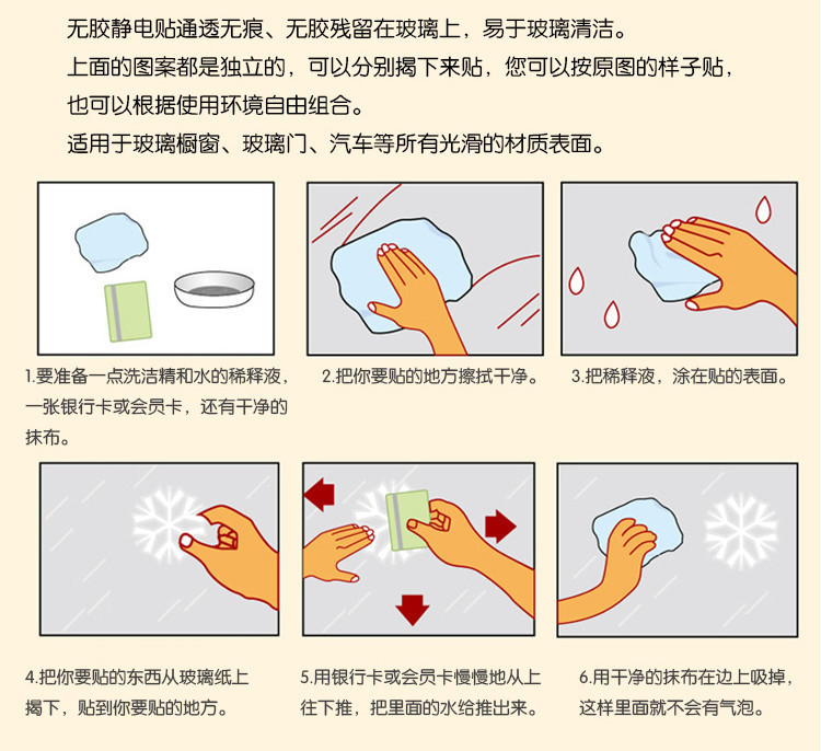 2:把你要贴的东西从玻璃纸上揭下,贴到你要贴的地方。(贴不住可以加点水)