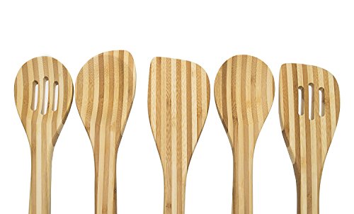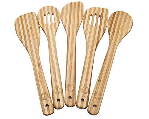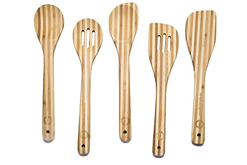 -. Feature : BEAUTIFUL, HIGH QUALITY, PREMIUM BAMBOO COOKING SPOON AND SPATULA TOOL SET - get this thick, wide handled, durable cooking utensil set made of natural, eco-friendly bamboo that is so beautiful that it can be hung in your kitchen or put in a utensil holder for decorative display / THICK AND STURDY WIDE HANDLES - There is no comparison between how the premium, thick bamboo utensils feel in your hand compared to wood utensils. In addition, the light weight yet superior strength of bamboo will allow you more control in the kitchen with your cooking recipes / 5 PIECE COOKING UTENSIL AND GADGET SET - Comes with serving spoon, slotted spoon, mixing spoon, spatula, and slotted spatula for all your cooking and baking needs. / NON-SCRATCH & EASY TO CLEAN MATERIAL - Bamboo is the ideal organic material to prevent damage to your expensive cookware and it is easy to clean with warm soapy water and dry thoroughly / 100% CUSTOMER SATISFACTION GUARANTEE - When you order your Bamboo Kitchen Utensil Set today, you're protected by our Top Notch Kitchenware money back guarantee and world class customer service!!