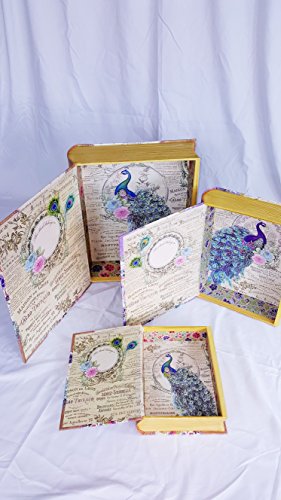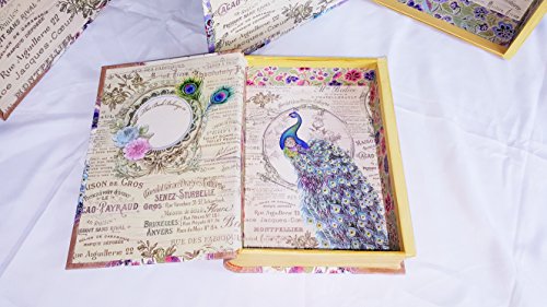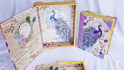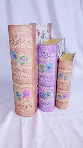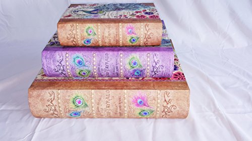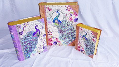 -. Feature : Faux Book Box Set of 3 Great for storage, memory keepsakes, photos, document storage, bookshelves, home decor, office decor, closet decor, jewelry / Paris style vintage book boxes paris themes embellish this box inside and out / Beautiful Rare Peacock design / Punch Studios Limited Edition "The Gifted Line" great for gifts, holidays, special occasions. / Great sizes, •Large Box: Length 11" Width 3.5" Height 13.5" •Medium Box: Length 9" Width 3.25" Height 11.5" •Small Box: Length 7" Width 3" Height 9.5"