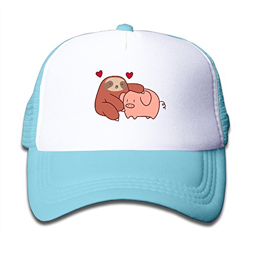 (Ilmum)/Accessories/Hats/DIRECT FROM USA/Kid's Sloth Loves Pig Trucker Mesh Baseball Cap Hat Trucker Hats SkyBlue