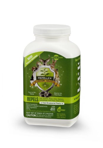 -. Feature : Systemic animal repellent / Approved for repelling deer, rabbits, moles, voles, gophers, groundhogs, feral hogs, dogs and cats / Breakthrough technology allows capsaicin (hot pepper) to be absorbed into the plant by simply planting a tablet next to a growing plants root system / Once the repellent is absorbed over 7-30 days, the repellent will stay active for up to one whole year / Since the repellent is internally treating the plant, it will not wash off in the rain like traditional repellents do over time