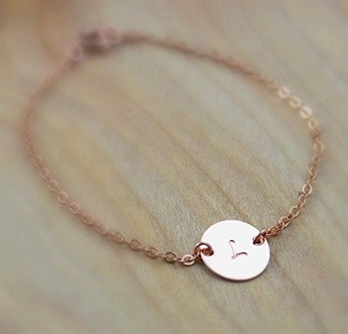 -. Title : 14k Gold Filled or Sterling Silver Disc Bracelet, Personalized Initial Circle Bracelet / Bridesmaids Gifts, Rose Gold Delicate Mothers Bracelet / Monogram Bracelet