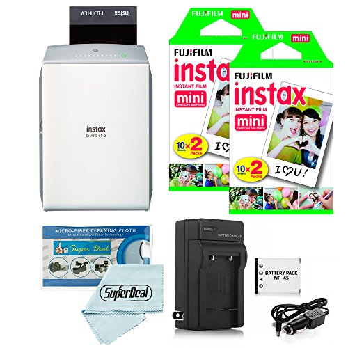 With Fujifilm Instax Mini 4 Packs Instant Film (40 Shots) + Battery and Charger + Cleaning Cloth