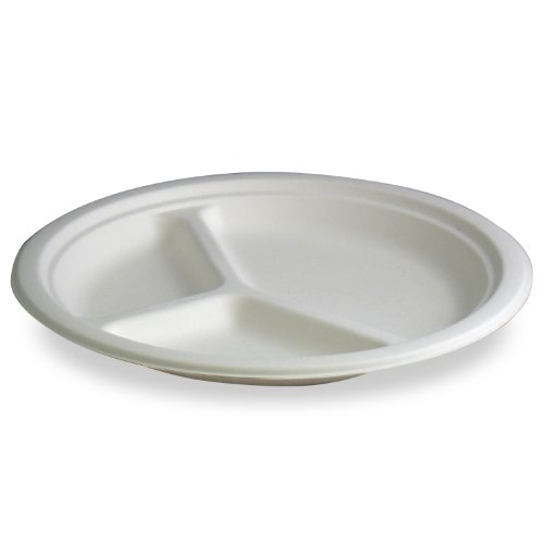 Stalkmarket 100% Compostable Sugar Cane Fiber 3-Compartment Plate, 10-Inch, 500 Count Case