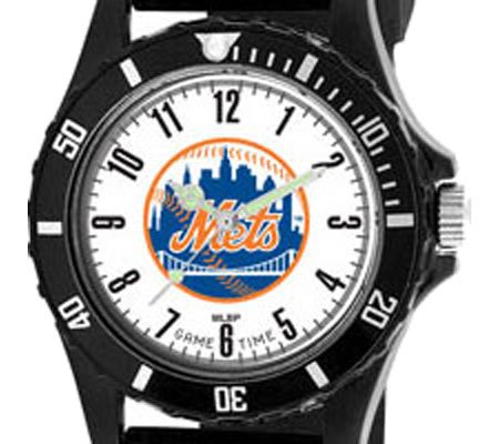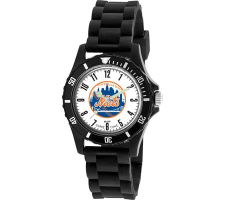 New York Mets NY Men's Adjustable Water Resistant Watch. This Mets watch features a black silicone strap with a stainless steel caseback. The watch has Japan quartz movement and is water resistant up to 3 ATM (99ft). This awesome new addition to your accesories features the Mets logo loud and proud right in the center of the face. Show of your New York pride with this time piece!Feature