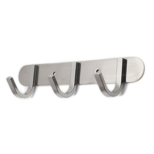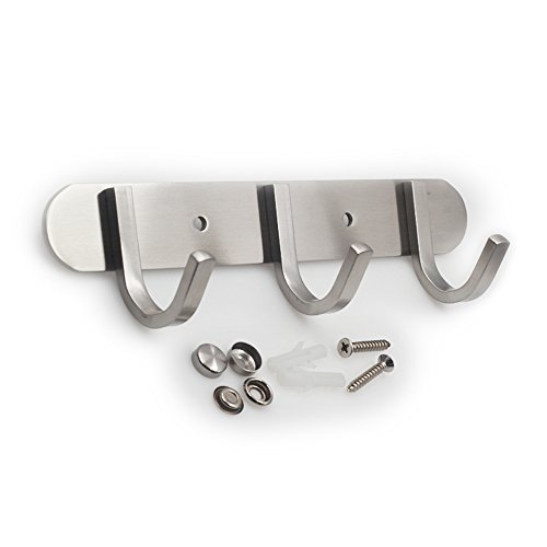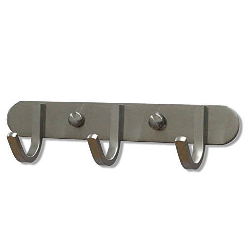 Bigthree Hook Rail/Coat Rack with 3 Scroll Hooks, Ultra durable with solid steel construction, Brushed stainless steel finish Super easy installation, Rust and water proof