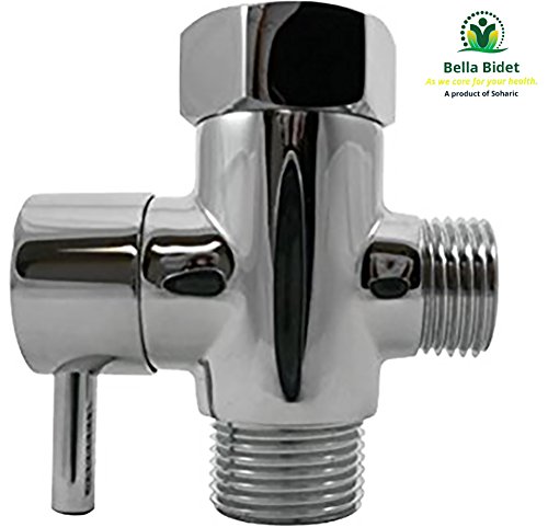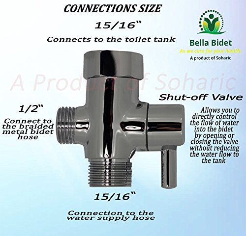 Bella Bidet Solid Brass Metal T-adapter with Shut-off Valve, 3-way Tee Connector for Handheld Bidet 15/16" and 1/2" IPS, Chrome Finish by Soharic