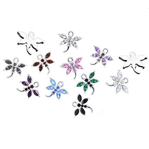 Housweety 20 Rhinestone Dragonfly Charm Pendants mixed 20x19mm