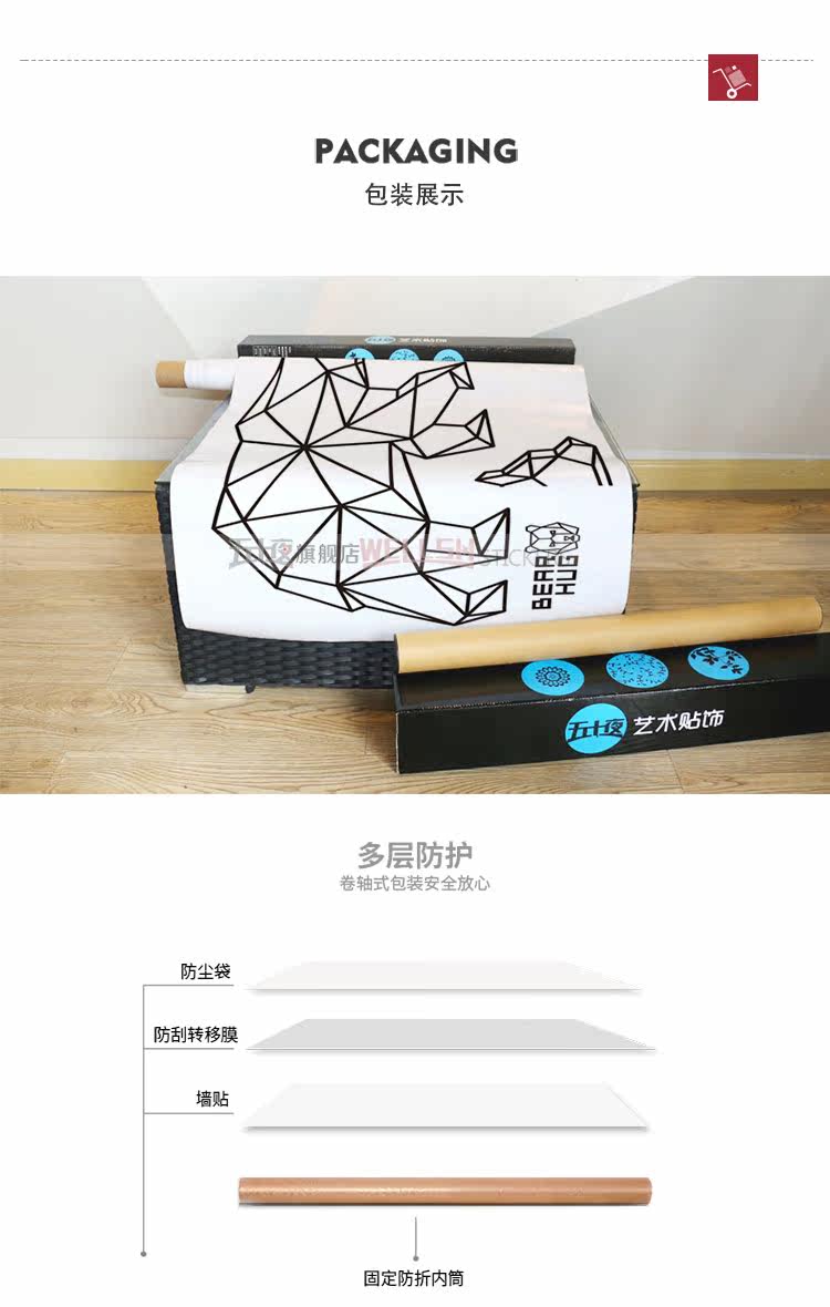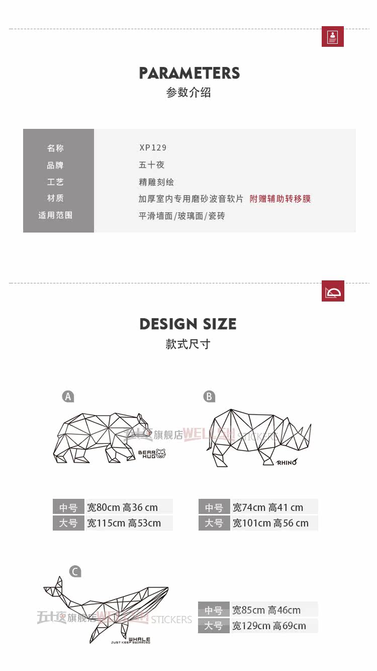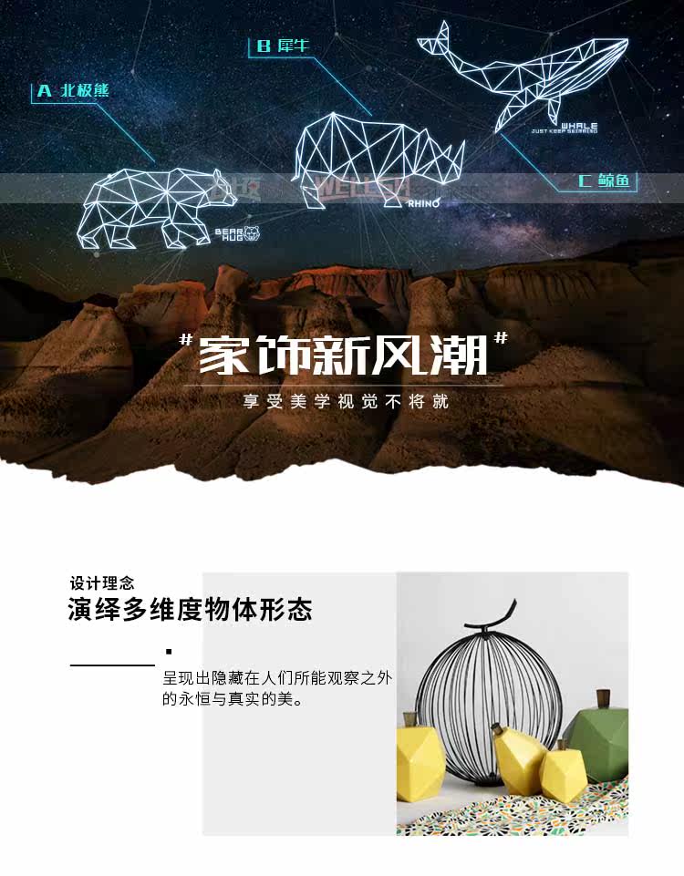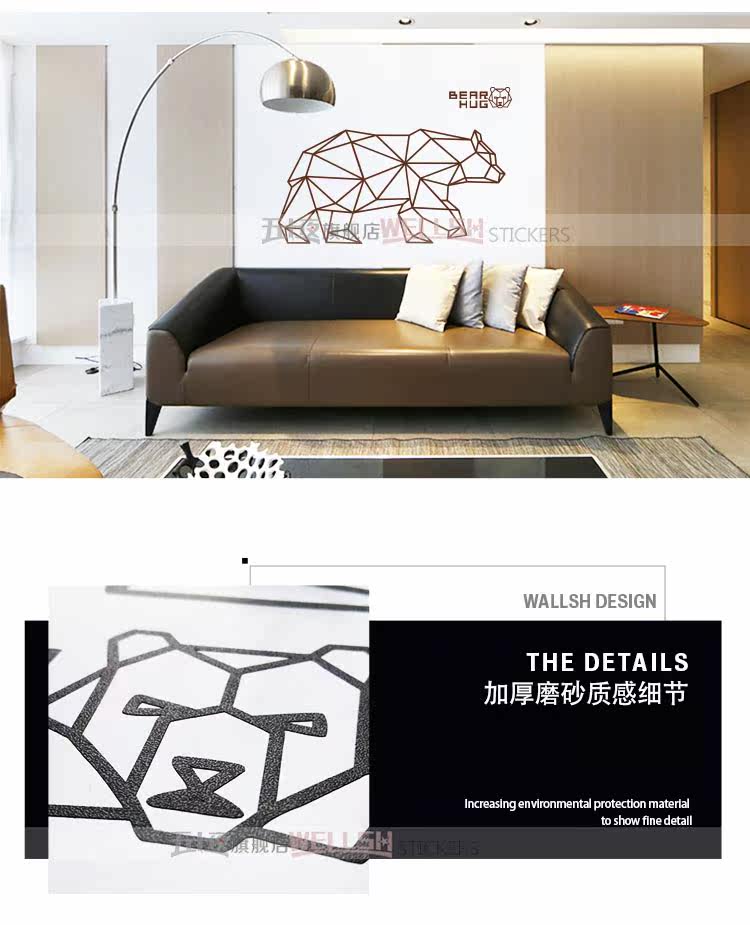 创意卧室墙贴 装饰客厅沙发背景墙上贴画几何犀牛鲸墙纸玄关自粘