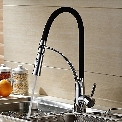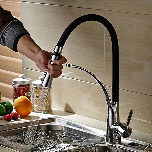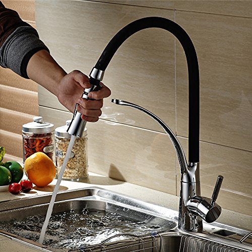 OWOFAN Kitchen Faucet Pull Down Spray Single Lever Black Pull Out Kitchen Faucet Basin Sink Mixer Tap Brass Chrome WF-7661