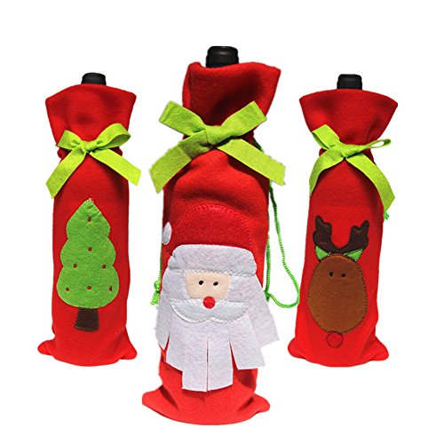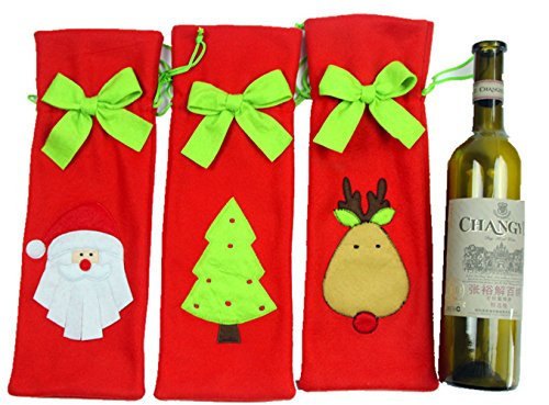 ZOONAI Christmas Wine Bottle Gift Bags Wine Bottle Cover Red Wine Bags for Party Hotel Kitchen Table Decor (C)