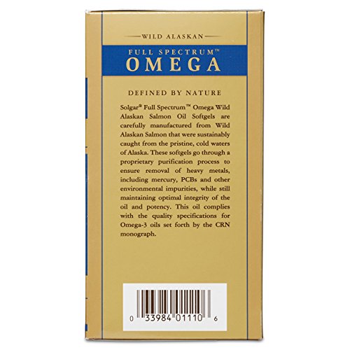 Solgar full spectrum omega wild Alaskan salmon oil softgels are carefully manufactured from wild Alaskan salmon that were sustainably caught from the pristine, cold waters of Alaska. Go through a proprietary purification process to ensure removal of heavy metals, including mercury, pubs and other environmental impurities.