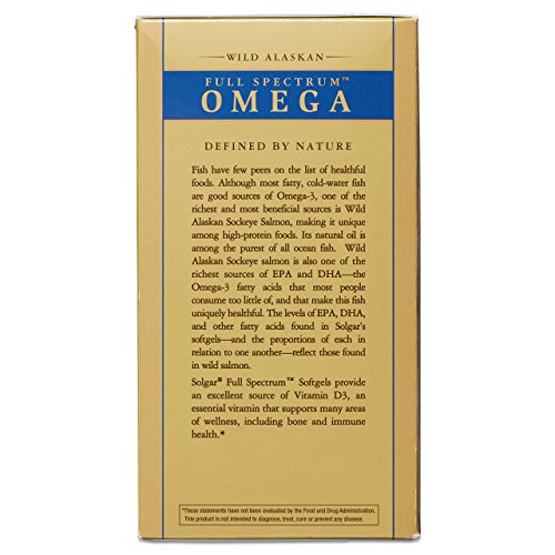 CAREFUL MANUFACTURING: Solgar Full Spectrum Omega Wild Alaskan Salmon oil softgels are carefully manufactured from sustainably caught wild Alaskan salmon. These salmon are caught from the cold, pristine waters of Alaska