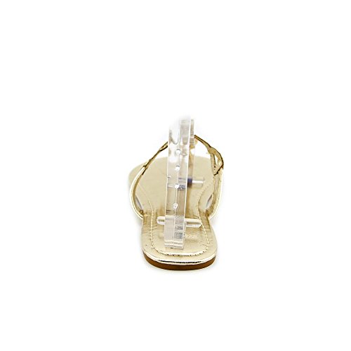 Round open-toe flat thong sandals with glitter detail