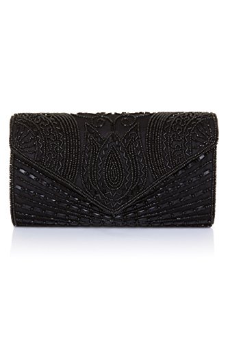 Binding : Apparel Product Description A heavily embellished 1920's vintage inspired flapper Clutch bag which is beaded front and back throughout in glistening sequins, beads and crystals in art-deco design. Top Flap opens into a luxurious satin inner and chain strap. Perfect for the finishing touch to a vintage bridal look or for any other special occasions like prom. You can easily fit your Iphone 6s and make up. Plenty of space compare to other clucthes. Hand Beaded Front and back hand embellished. Dimension W 21cm x H 11cm approx 0