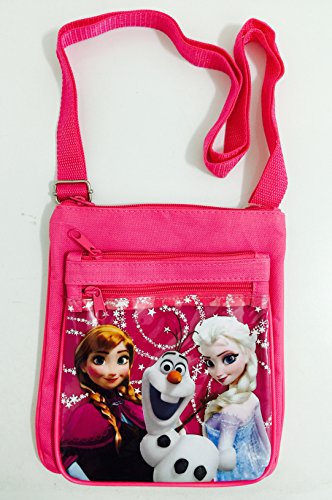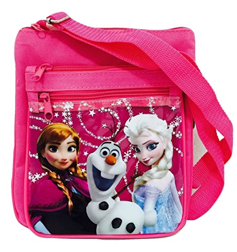 Disney Frozen Elsa Anna Olaf Two Layers Flippable Shoulder Bag with Adjustable Shoulder Strap (Hot Pink)