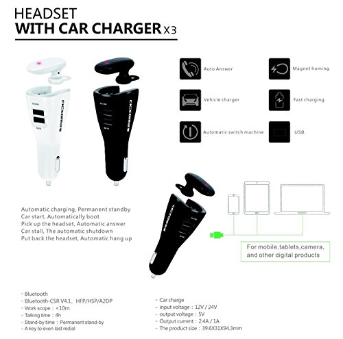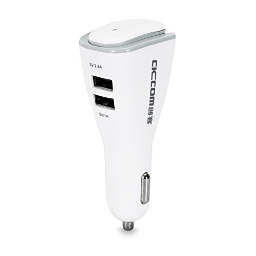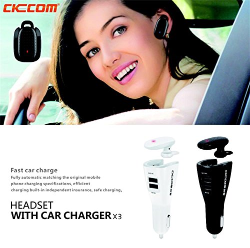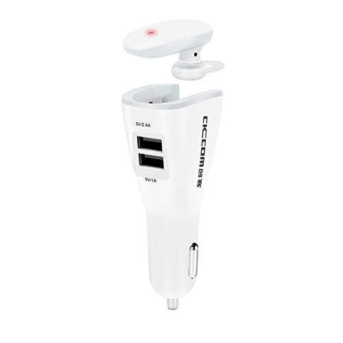 CKCOM Fast Car Charger Bluetooth Headset,2-in-1,Always has electricty ,Auto Answer,Wireless Earbud CSR4.1, Fit all car connections phone ,2USB,5V 3.4A,Automatic charging, just for safe driving (White)