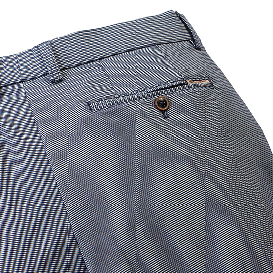 - 잔잔한 마이크로 패턴을 적용한 남성 캐주얼 팬츠.