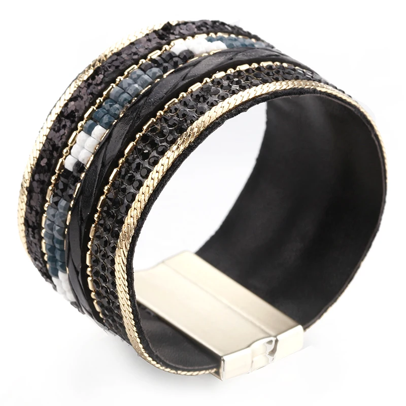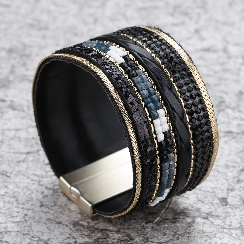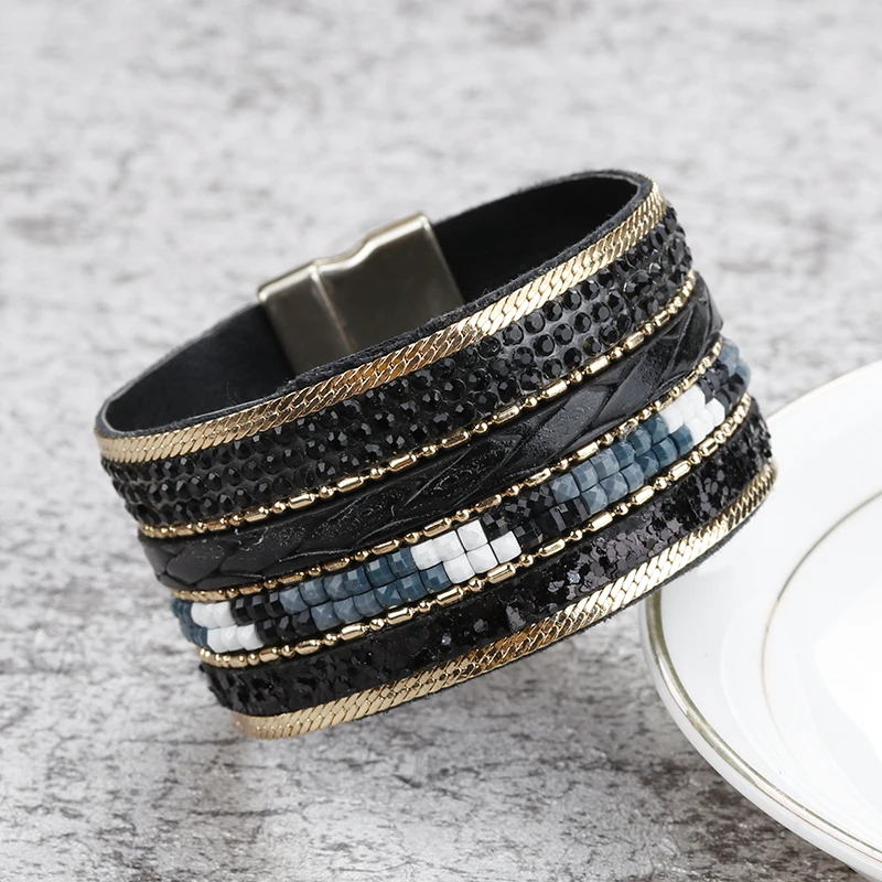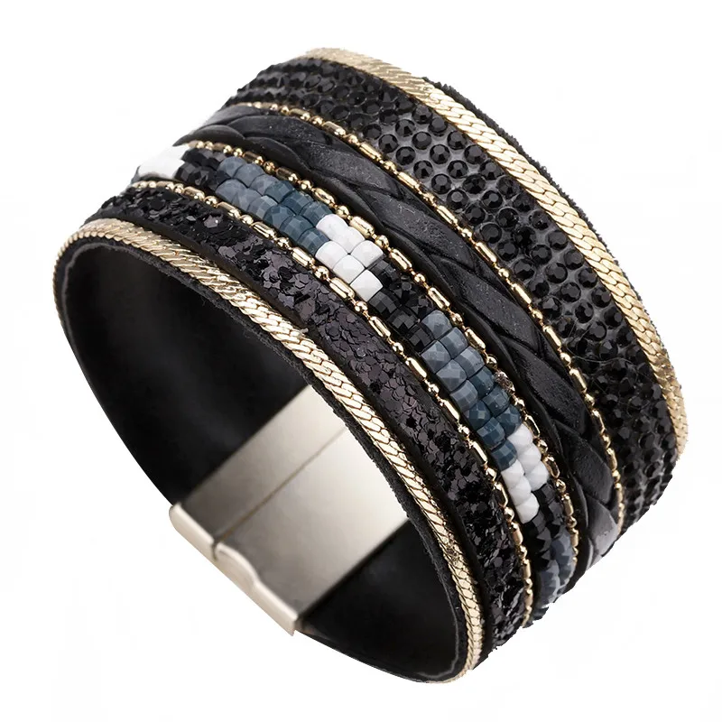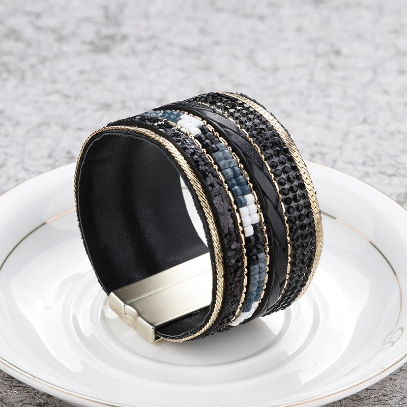 Fine Or Fashion:Fashion PU Leather Square Rhinestone Bangle