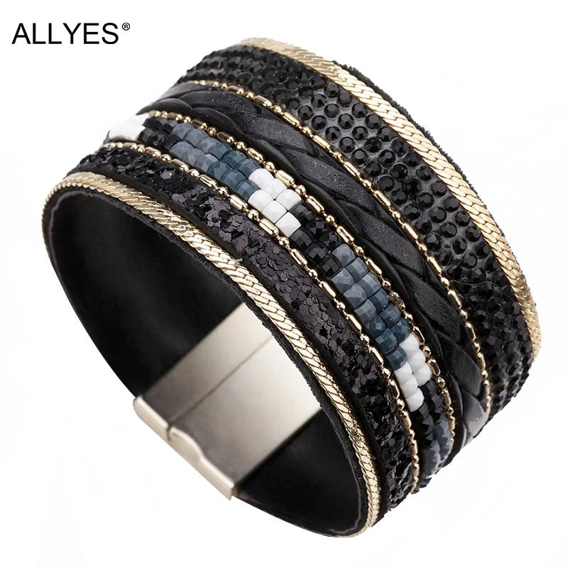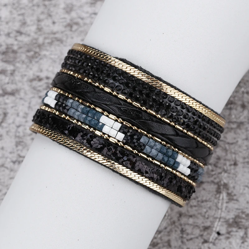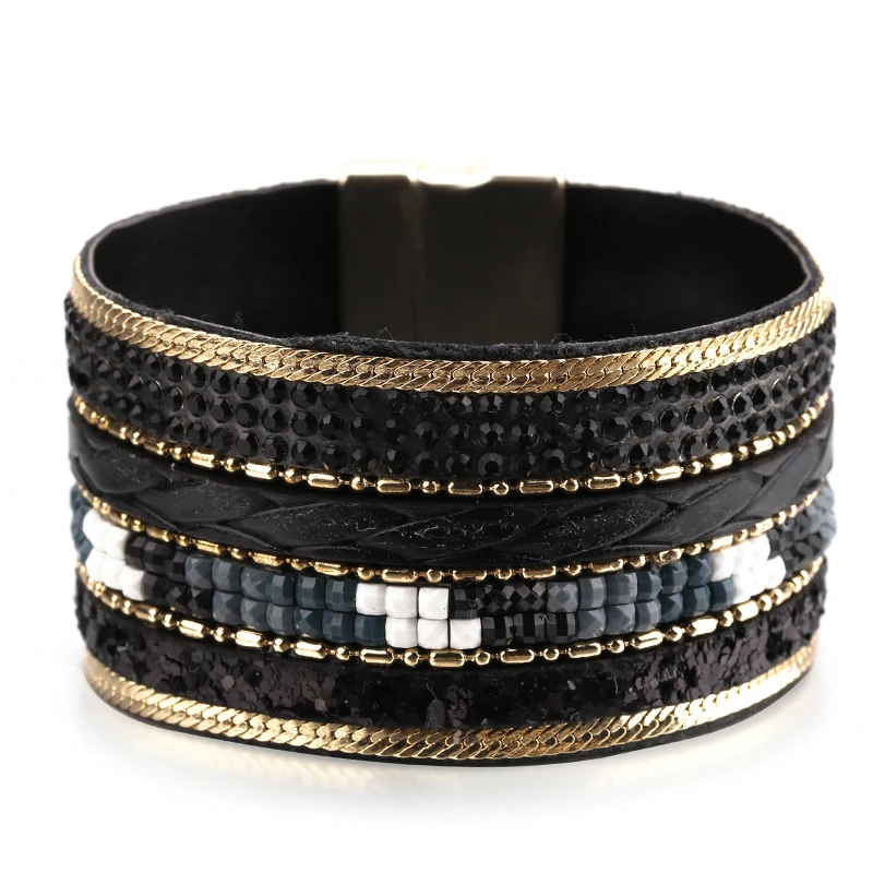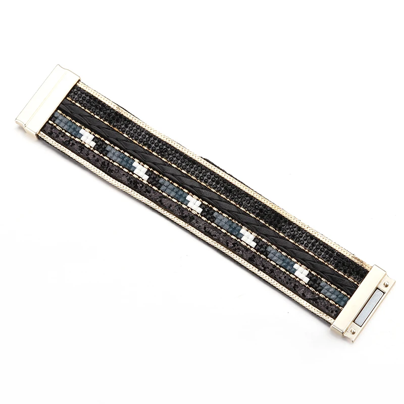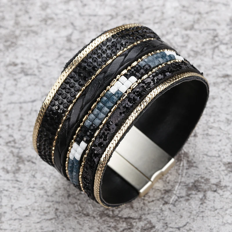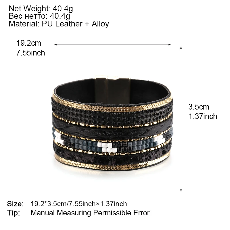 Fine Or Fashion:Fashion PU Leather Square Rhinestone Bangle