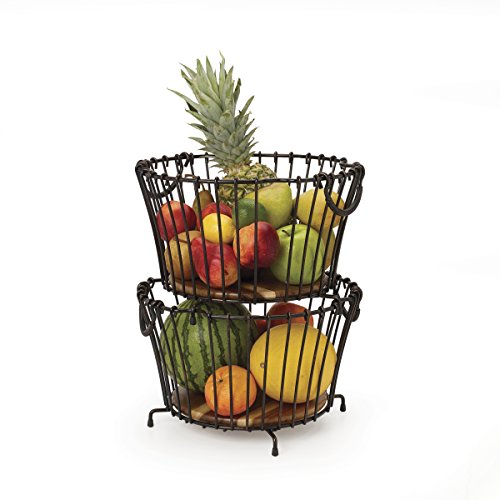 Gourmet Basics by Mikasa Round Stacking/Nesting Metal Basket, Antique Black