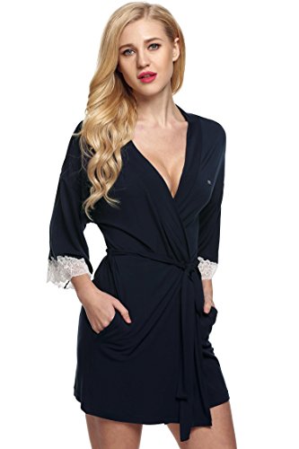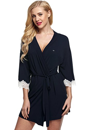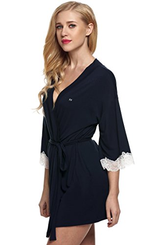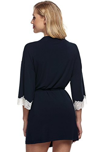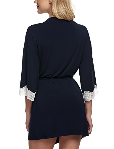 Ekouaer Women's Sexy Nightwear Kimono Viscose Short Bath Robe,Navy,Small