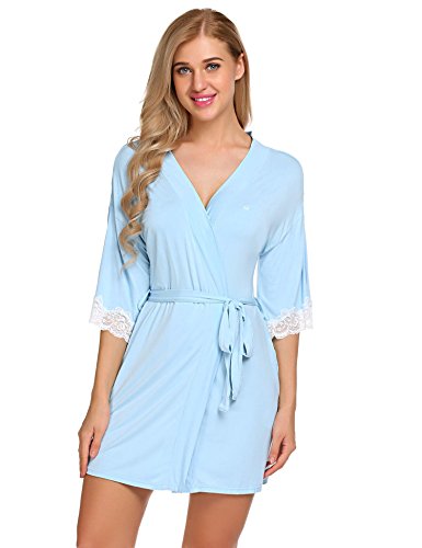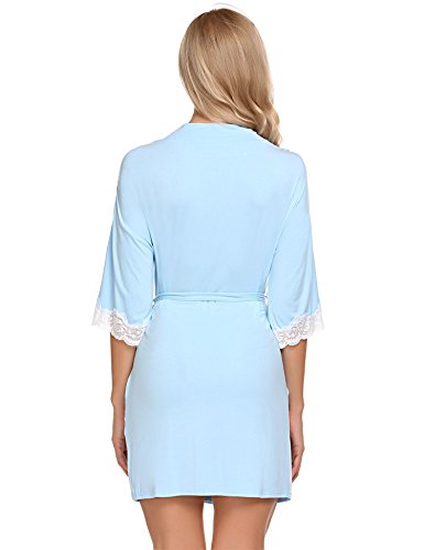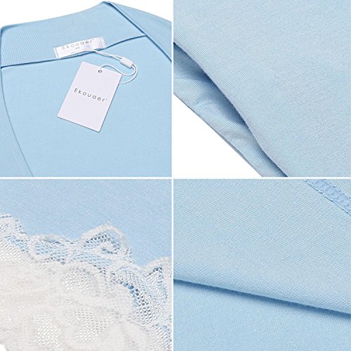 Ekouaer Women's Kimono Robe Short Lightweight Viscose Knit Bathrobe (S-XXL) (Medium, Light Blue)