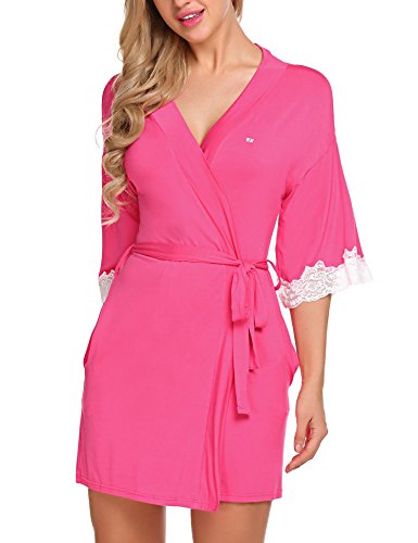 Ekouaer Women's Kimono Robe Short Lightweight Viscose Knit Bathrobe (S-XXL) (Medium, Rose Red)
