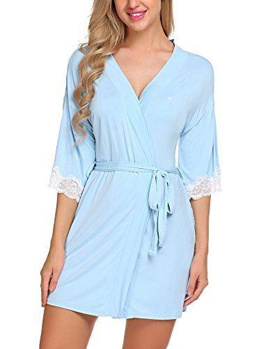 Ekouaer Women's Kimono Robe Short Lightweight Viscose Knit Bathrobe (S-XXL) (Small, Light Blue)