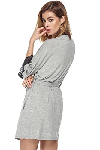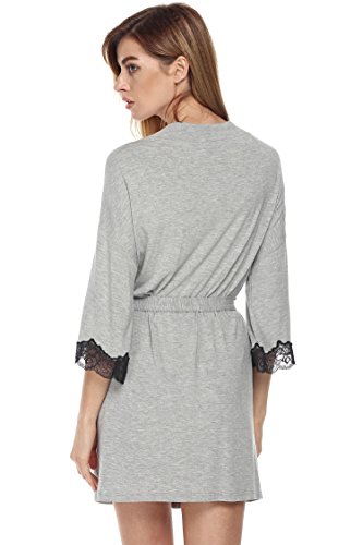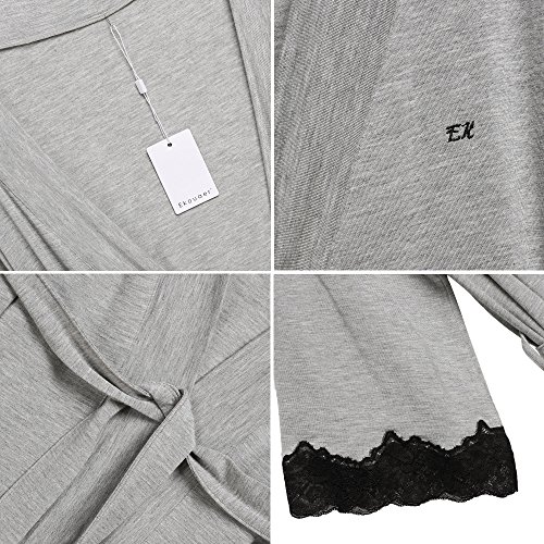 Ekouaer Women's Sexy Nightwear Kimono Jersey Short Bath Robe,Gray,Medium