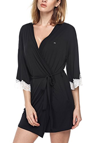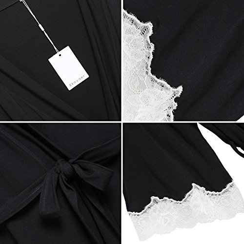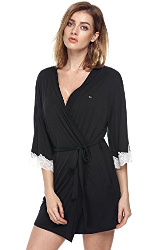 Ekouaer Womens Robe Sexy Sleepwear Kimono Short Spa Bathrobes,Black,Small