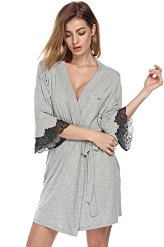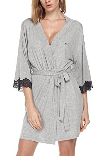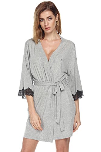 Ekouaer Kimono Robe Womens Short Sleepwear Gown (Gray, XS)