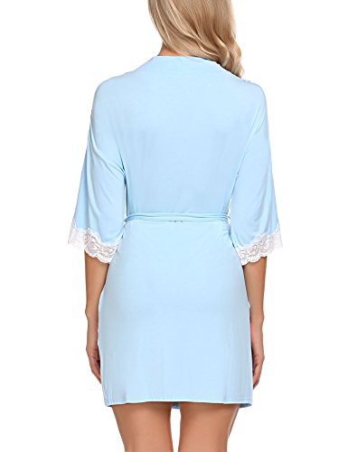 Ekouaer Women's Kimono Robe Short Lightweight Viscose Knit Bathrobe (S-XXL) (X-Small, Light Blue)