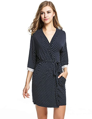 Ekouaer Bath Robe Woman Soft Knit Loungewear Bridesmaids Short Style (Navy Dot, Medium)