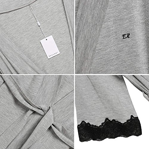 Ekouaer Womens Ladies Kimono Bathrobe Loungewear Sleepwear Dressing Gown,Gray,XL