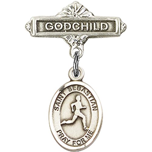 -. Title : Sterling Silver Baby Badge with St. Sebastian/Track & Field Charm and Godchild Badge Pin 1 X 5/8 inches