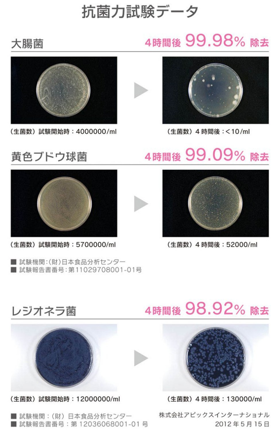Remove E. coli, Staphylococcus aureus, Legionella bacteria.