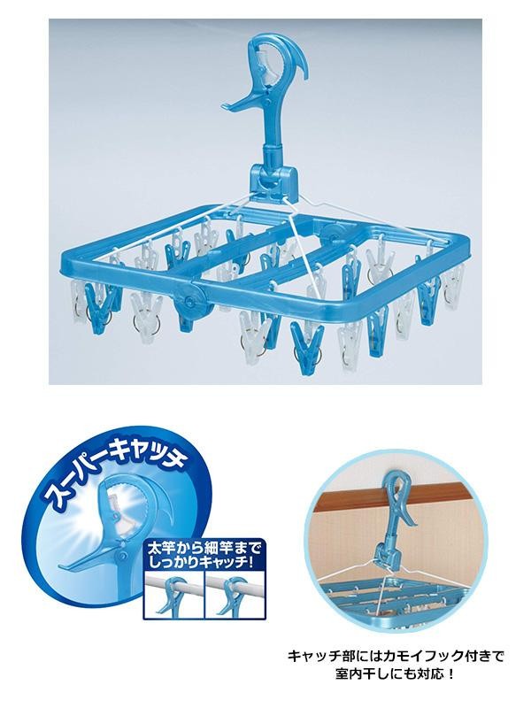 コンパクトサイズでピンチが24コついているので、場所をとらずに小物をたくさん干すことができます。物干し竿にしっかりと固定できるキャッチ式ハンガーです。 |