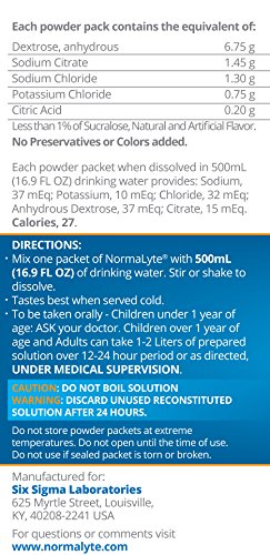 NormaLyte quickly RESTORES hydration levels to normal by replenishing the ELECTROLYTES and FLUIDS lost due to diarrhea, vomiting, chronic illness and excessive sweating because of heat or exercising. NormaLyte is based on the World Health Organization's (WHO) new, recommended formula, which has been adopted by healthcare professionals world-wide as the standard of care for mild to moderate dehydration. NormaLyte has been created by real practicing PHARMACISTS and developed into a GREAT-TASTING hydration drink. NormaLyte is hypo-osmolar and efficiently utilizes the Sodium/Glucose Co-transport mechanism to QUICKLY and EFFECTIVELY bring the body back to normal conditions.Feature