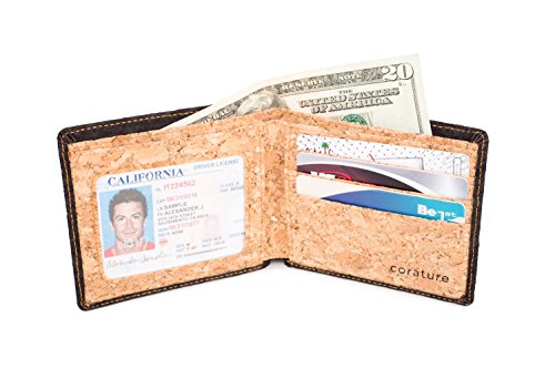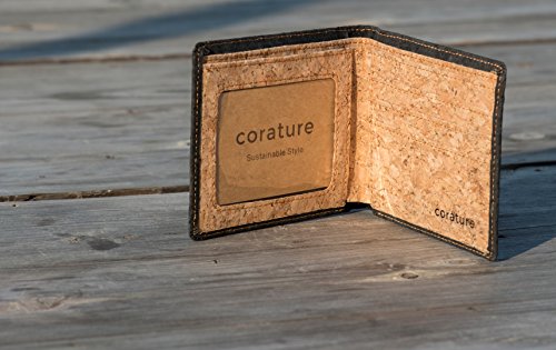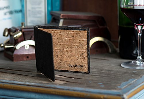 -. Binding : Apparel -. Brand : corature -. Color : Black outside / Light Brown inside -. Department : mens -. EAN : 0643507983362 -. Feature : Cork Bifold Slim Wallet / LIGHTWEIGHT and Buoyant - Yes, our wallets float! / DUAL BILL COMPARTMENT easily carry multiple currencies / ID compartment and room for credit and debit cards / Made from sustainable materials. VEGAN no animals used in production -. PackageQuantity : 1 -. ProductGroup : Apparel -. ProductTypeName : ACCESSORY -. Size : One Size -. Title : Bifold Slim Men's Wallet made from Eco friendly Cork -. UPC : 643507983362