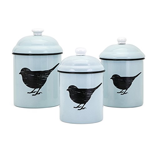 Trisha Yearwood Home Collection 15100-3 Ty Songbird Enamel Canisters - Set of 3 Trisha Yearwood Home Set of 3 Songbird Enamel Canisters