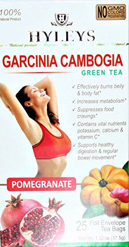 (Hyleys)/Vitamins Dietary Supplements/Weight Loss/DIRECT FROM USA/1 Pack of Hyleys Garcinia Cambogia Pomegranate Slim Green Tea (25 Foil Tea Bags)