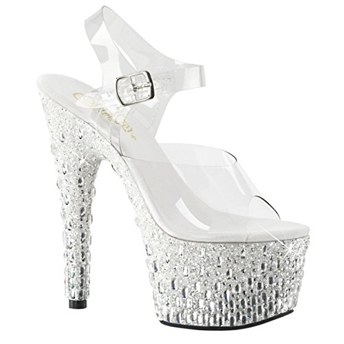 Womens Ankle Strap Shoes Silver Platform Sandals Glitter Stones 7 Inch Heels