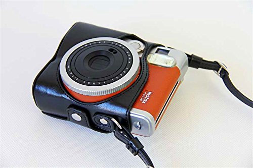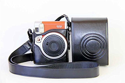BolinUS Handmade PU Leather FullBody Camera Case Bag Cover for Fujifilm Instax Mini 90 with Neck Strap Battery Bag -Black