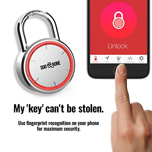 Dog & Bone Locksmart - keyless bluetooth padlock - smart padlock - smart lock - Silver