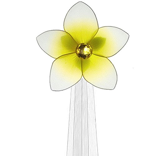 Product Description Makena flower tieback decorations are flower decorations made on nylon and wire. These plumeria flowers are approximately 6" in diameter. These flowers have a gentle ribbon that ties around your curtains to hold them back. 0