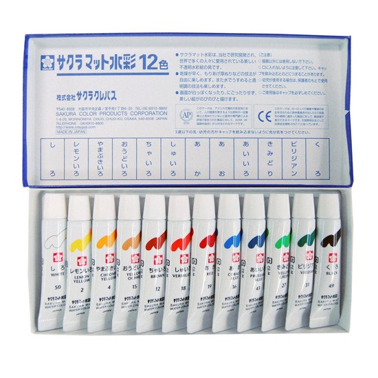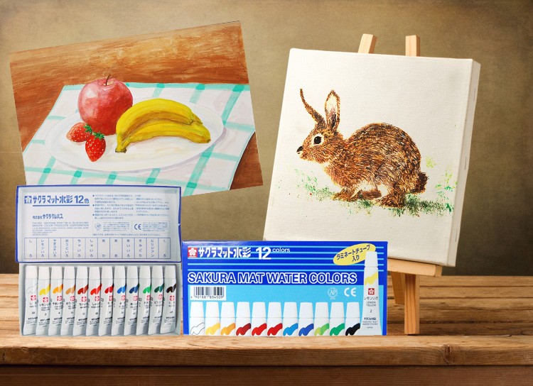 絵具を溶く水加減を調節して、多めの水で薄く溶くと透明水彩のように使えて、少なめの水で濃く溶くと不透明水彩のように使えます。 学校の授業に最適 薄く溶くと透明水彩のように「にじみ」や「かすれ」ができるので、風景、静物、人物などの写実的な表現に適しています。 濃く溶くと不透明水彩のようにムラなく均一に塗れるので、平面構成、ポスターなどのデザイン的な表現にも適しています。