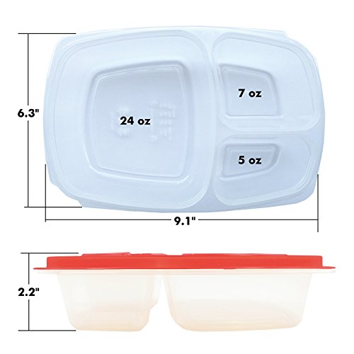 - KEEPS FOOD SEPARATED - 3 compartments (9.1" x 6.3" x 2.2"),keeps food separated, made from FDA-approved, high-quality polypropylene #5 plastic; BPA free