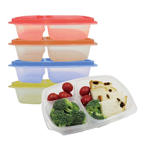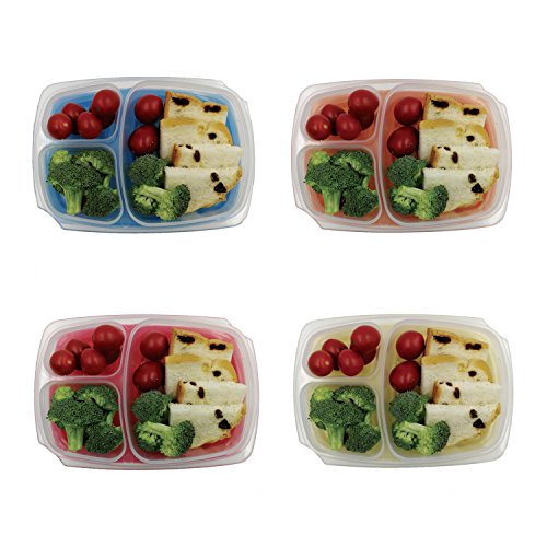 Prefer Green 3-Compartment Bento Lunch Box Containers, Leakproof, Food Storage Containers,36 oz, Set of 4 (Colorful)