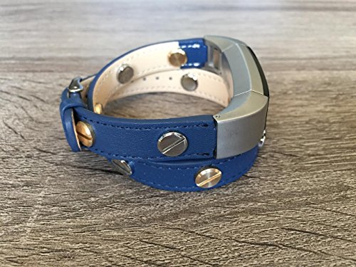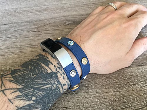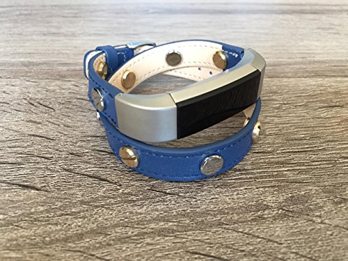 -. Title : Double Wrapped Navy Blue Leather Band For Fitbit Alta And Alta HR Handmade Eco Friendly Bracelet With Multiple Two Toned Silver & Gold Rivets By BSI